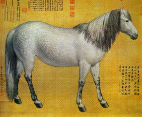 《如意骢》(清)郎世宁绘 台北故宫博物院藏。如意骢为准噶尔台吉进贡乾隆皇帝的骏马。