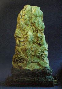 高2.24米,宽0.96米,错金铜座高0.6米。故宫博物院藏。玉质青色。开山治水的民工们,用原始的工具凿石开山,展现出艰巨、紧张、壮观的劳动场面,气势磅礴。