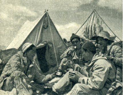 1956年7月,中苏混合爬山队为了爬上拔海7546公尺的慕士塔格山峰,一共建立了5个高山营地。图为第三号营地。