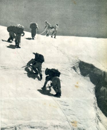 7月31日,慕士塔格山峰第一次印上了人类的足迹—经过6天的搏斗,31名中苏队员全部爬上了山顶。