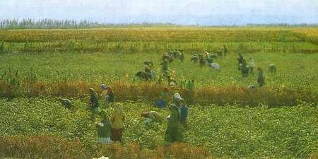 采收新棉。现在,包孜洪的棉花田亩产达五十公斤以上。