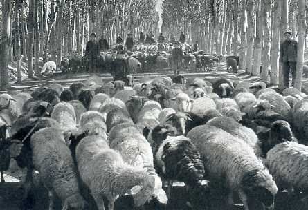 十年来,大队的牲畜由二千九百头增加到七千头,这是大队羊群。