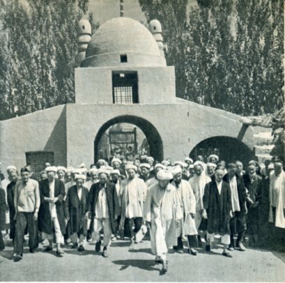 吐鲁番城郊的清真寺。吐鲁番低于海面15公尺,最高气温达摄氏48度,是我国最热的地方,传说“西游记”中的火焰山就在这里。(1957年)