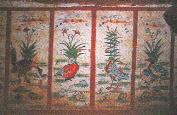 唐墓壁画花鸟屏风,阿斯塔那古墓群第217号墓出土。