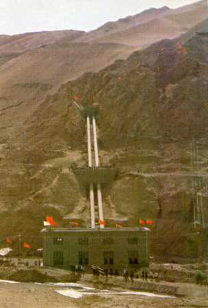 这座发电站位于火焰山上,是一九七四年新建成的。