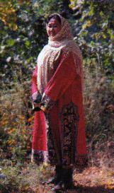 维吾尔族贵妇长袍。维吾尔族旧时贵族妇女的绣花长袍,款式和装饰受清代旗袍影响,绣工十分精细。