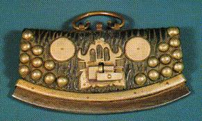 维吾尔族男用剥刀。维吾尔族成年男子的佩戴物,制作工艺讲究,既是实用品又是装饰品。