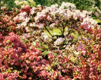 (杜鹃花)昆明盛产的花卉之一,有红、紫、白、黄等四百多种,以红色最多。它在春季杜鹃鸟啼时盛开,故名。我国古代传说,一个美女被皇帝抢去,饮恨而死。死后变成杜鹃鸟,悲啼出血,把花也染红成了红色。
