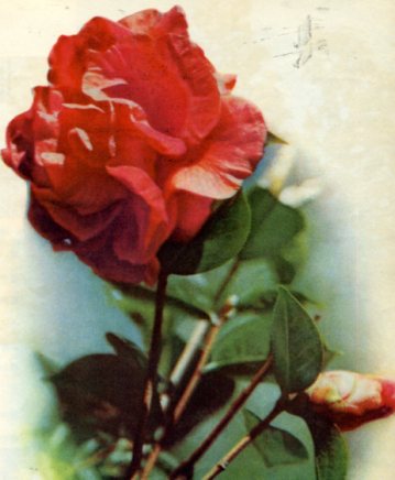 (叶予花)花很小,藏在叶形的鲜红花苞里。这种花昆明非常多,池边、墙角随处都是。艳丽的花枝爬过墙头,行人从花下经过,每有“春色满园关不住,一枝红杏出墙来”的意境。
