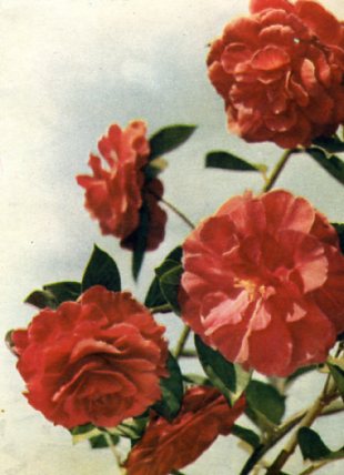 (山茶花)花形很大,色泽艳丽,开于冬末春初。所以宋代诗人曾巩诗说:“山茶花开春末归,春归正值花盛时”。这种花十七世纪从我国传到欧美,被誉为世界名花之一。云南现有“柳叶银红”、“牡丹茶”等三十多个品种。昆明有一株“早桃红”,它的寿命已达三百多年。