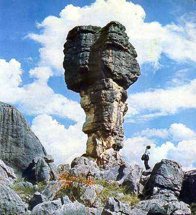 石林是石灰岩地形发育的表现,它有很多孤立的山峰;上部因长久侵蚀风化,峰顶形成各种各样的园锥体。
