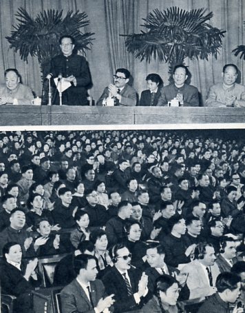在“中古友好旬”期间,首都各界人民举行了庆祝古巴革命胜利四周年和中国古巴友好协会成立的盛大集会。图为中国拉丁美洲友好协会会长楚国南在大会上致词和大会会场。