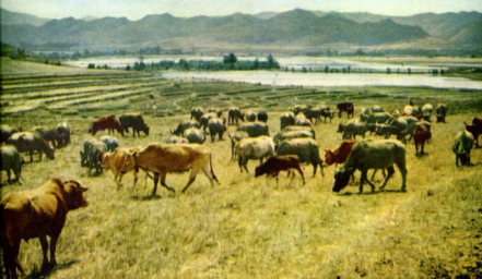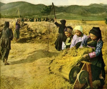 红旗农业社在云南省文山县,1954年春成立时只是一个28户的初级社。经过两年的增产和扩社,这个初级社已在去年下半年转成高级社,拥有450多户社员了。这是社员在麦收。