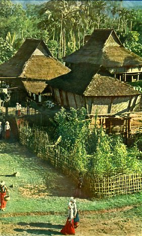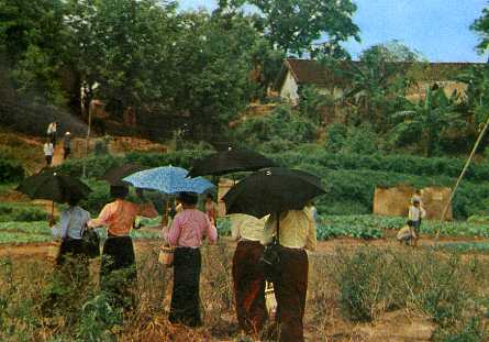 云南西双版纳傣族聚居地区,由于连年丰收,出现了许多砖木结构的新住宅。它们具有傣族的特有形式。