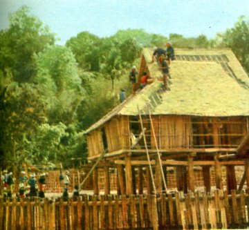 一家盖竹楼,全村来相帮,这是傣族的优良传统。
