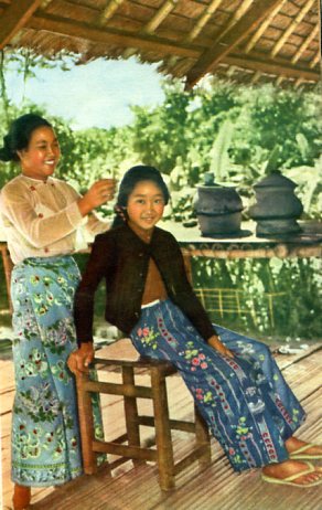 家家都有这样舒爽宜人的凉台。上面铺的竹板擦得发亮。人们在这里谈天、饮茶、纺线、梳妆。有时也在这里用饭和招待客人。