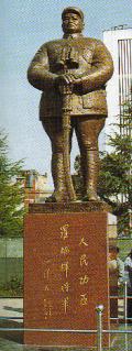 云南行辕和中国远征军长官部于1944年4月30日在保山举行了滇西大反攻动员大会,组织部队开赴前线。图为云南行辕主任龙云(前中)和中国远征军司令长官(左一)在动员大会上检阅部队。