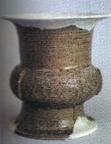 春秋原始瓷云雷纹尊。春秋时期的原始瓷器,沿袭西周传统,器型模仿青铜器,花纹繁缛细密,制作精美。德清县出土。口径19.6厘米、高20厘米。