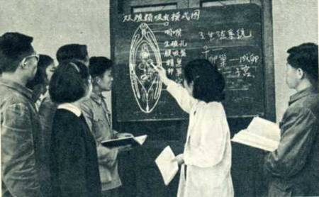中国科学院菱湖鱼病工作站人员给各地水产工作干部讲解防治鱼类寄生虫的知识。