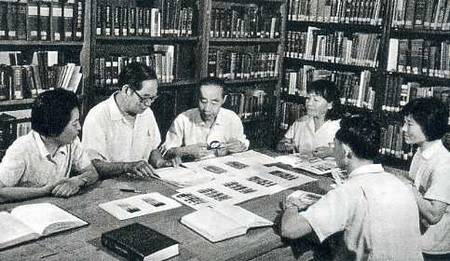 童第周教授和牛满江教授及夫人张葆英,同试验小组一起进行学术讨论。