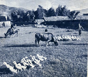 有一次国民党匪军来抢鹅,大妈把一只羊和两鸭给了他们,才把两只鹅保留下来。