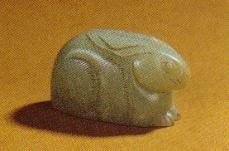 (南宋)白玉兔镇纸。高3.6厘米,长6.7厘米,宽2.6厘米。1974年衢州市王家乡瓜园村史绳祖墓出土。
