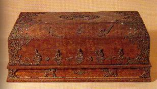 (北宋)堆漆描金经函(外函)。底长40厘米,宽18厘米,高16.5厘米。北宋慧光塔出土。