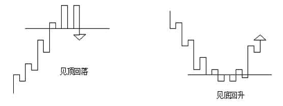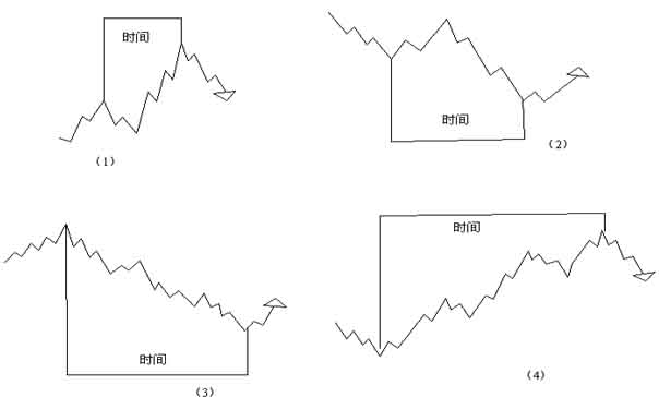 ;图16 市场创新高见买入的机会,创新低则是沽出的机会 不过,在应用上面的简单规则前,江恩认为必须特别留意时间的因素,特别要注意: 江恩在这里的规则,言下之意乃是指出,如果市场上创新高或新低,表示趋势未完,投资者可以估计市场下一个转势的时间,这个时间可以从前文所述的“数字学”而计算。若所预测者为顶部,则可从顶与顶之间的日数或底与顶之间的日数以配合分析;相反,若所预期者为底部,则可从底与底之间及顶与底之间的日数配合分析,若两者都到达第三的日数,则转势的机会便会大增。