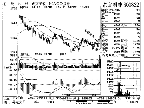 不要一哄而上,这样就形成大户脉冲了。 王:(99/05/17 10:30分)上一次听了胡老的讲解,我们都买了东方明珠,有的大户抛掉一切股票就买您胡老点的个股。我统计了一下大家的买入成本,一般在15.30元至 15.50元附近。今天东方明珠开盘一小时就涨了5.71%,而且放量通过前头部,这不是标准的【轻松过头】吗?我们这里还有些大户想再买进东方明珠,您老的意见如何? (图600832-2) ![]() |