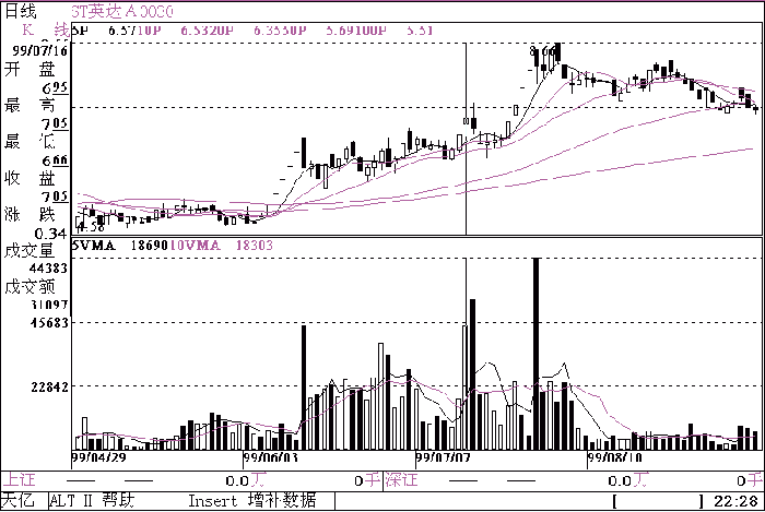 拉升前的实战演习 庄家的招式往往虚虚实实,有时欲涨先跌,有时以退为进,走势扑朔迷离,让投 资者难辨真伪。目前两市中大量出现假突破形态,即主力吸足筹码后先大幅冲高再回落,短线跟进者立刻被套,但只要你一割肉该股却很快止跌回升,迅速展开主升段,这个假突破可称为庄家总攻前的 - 实战演习 - 。 若某个股票经过长期盘整,突然收一根放量长阳,技术上呈突破走势,按经典理论此时是最好的介入时机,技术派人士纷纷抢买之际,但该股却很快(通常是第二天)冲高回落,重返平台盘整,让 - 谗嘴 - 的技术派买个最高价。此种走势通常为主力大规模进攻前的一次 - 演习 - ,此判断跟风盘的多少、市场抛压的大小。典型的如飞彩股份( 0887 ),该股 98 年 12 月上市以来基本保持横盘整理态势,一望而知为主力压盘吸筹的形态, 3 月中旬起连续放量,量能开始增大, 3 月 18 日开于 14.55 元,收于 16 元,一根长阳突破 14 元附近数个月的整理平台,短线客纷纷涌入之际,第二天冲高后却快速回落,接着连收数阴,股价重返 14 元附近的平台,让众多投资者扑了个空,被 - 骗 - 了一次的投资者心有余悸、渐渐忘却了该股,主力却在 5 月 25 日再度收一长阳,其后一路稳步上攻,目前已接近翻番。投资者若被原来的 - 虚招 - 吓跑则会丧失大好的赚钱机会。 再如 ST 黔凯涤( 0555 ) 5 月底起长期在 10 元附近平台整理, 7 月 14 日、 15 日连续涨停,呈向上突破之势, 16 日却收一高开低走的长阴,成交同时放出大量,换手率高达 15% ,股价重新返回平台。主力虚晃一枪,让跟进的割点肉出来后再展开主升段,股价持续缩量上行。 主力如此 - 折腾 - ,其意图主要为:1、吓跑短线客。某股市场被一致看好,引发大量的短线客涌入,不符合主力的长线运作计划,要让多头部队不敢贸然跟进的最好方法是先 - 诱敌深入 - ,接着再迎头痛击,使其损兵折将之后不敢再轻举妄动, 2 、拉升前试盘,以此测试抛盘和跟风盘的大小,再决定拉升高度。 投资者对这种演习,最好等待回档时再吸,但若不幸你在假突破时买了最高价,此时亦不必惊惶失措,既然主力在 - 演习 - ,显示主力的实力不菲;刚刚升一天即回落,显然主力难有获利空间,后市卷土重来的可能性非常大。两市中的ST深中华A( 0017 )、ST英达( 0030 )都在7月16日出现假突破,经回落整理后这些个股都再度走强,假突破之后往往是真突破。