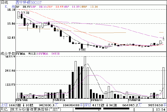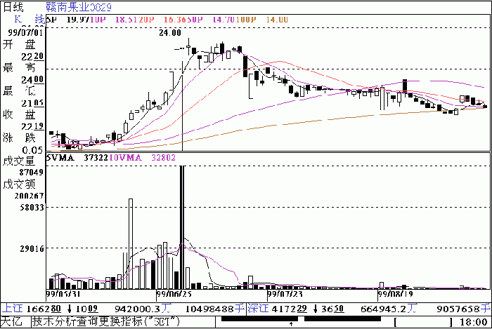 价和量构成了股市的两大基本因素,在分析股价时必须结合成交量进行分析,同是上涨了 10 元,甲股用 10% 的流通筹码来推动,而乙股需用 20% 的流通筹码来推动,两者所费的能量显然不同;同样是股价大幅下跌,某股呈无量盘跌走势而另一个股票呈带量下跌的态势,两者的技术含义亦有天渊之别。因而,单纯看股价涨或跌了几毛几元意义不是很大,要正确把握股价运动的实质需分析量的大小。其中,对缩量调整的个股可特别加以关注。 有人一看见股价下跌便惊慌失措,其实,若是某股下跌过程中呈无量下跌的走势,说明量对价的运动并不认可,两者配合不默契,下跌趋势迟早会改变。聚又网络( 0693 ) 98 年 11 月 19 日在 21.28 元见顶之后反复下挫,至 99 年 2 月 8 日最低见 12.88 元,跌幅 40% ,跌幅虽大,投资者在下跌过程中如果分析一下成交量的情况,就不会抛在最低价了:该股从 11 月 20 日调整展开至 2 月 8 日,每天仅有星星点点的成交量,三个月仅合计成交 800 万股,占该股流通股的 26% ,出逃的都是一些游兵散勇,市场惜售心态浓厚,股价虽折损近半,但主力元气丝毫未损,后市很快纠集兵力反击,不仅迅速反复失地还创出 31 元的高价。 炒股类似于做买卖,要推测某种商品的真实价值,可从跌价时卖方的态度中推测:若市价下跌时肯割肉的寥寥无几,说明该商品价值较高;同样,股价下跌时成交量极度萎缩,说明该股含金量较高。而连收长阴仍伴随着巨大的成交量,说明卖者急于脱手,即使跌至 - 跳楼价 - ,卖方仍排着长队等着让人割肉,如 8 月初的西宁特钢。这些个股一是说明内在价值不高,二是说明主力急于脱身而逃,后市反复下跌的可能性极大,投资者宜敬而远之。 中集集团( 0039 )和赣南果业( 0829 ) 7 月份以来呈小幅盘跌态势,成交极度萎缩, ST 黔凯涤( 0555 ) 8 月 9 日 -12 日连收数阴,但下跌过程中并未放量,卖方有明显惜售现象。对这些缩量盘跌的个股暂时可采取观望的态度。一般来说,调整趋势一旦形成短期内难以改变,只有成交重新放大、才有重新走强的机会。对不幸困守其中的亦不宜急于斩仓,星星点点的成交量说明庄家与你一同被套,在低迷的日子里不妨与庄家同甘共苦。