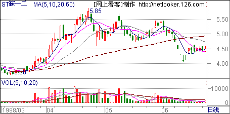这是鞍山一工的K线图(见图60),我是在3.90元买入的,价位相当不错,当行情