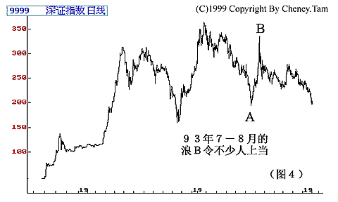 股却十分抗跌。投资者如果感觉到这个市场不对劲,那么,B浪的可能性就很大了(图4)。
