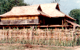 古人说:“宁可食无肉,不可居无竹”。从这个意义上说,生活在云南西双版纳地区的傣族算得上是最最幸福的人,因为他们不仅居住在“竹”楼里,还吃着“竹”筒饭、喝着“竹”筒酒,真是比神仙还逍遥。来到版纳,最令人心动的就是那成片的竹林以及掩影在竹林中的一座座美丽别致的竹楼。从外形上看,它像开屏的金孔雀,又似鹤然起舞的美丽少女,美丽的景致让人恍然如在梦中。 竹楼的传说 相传很远的古代,傣家有一位勇敢善丽的青年叫帕雅桑目蒂,他很想给傣家人建一座房子,让他们不再栖息于野外,他几度试验,都失败了。有一天天下大雨,他见到一只卧在地上的狗,雨水很大,雨水顺着密密的狗毛向下流淌,他很受启发,建了一个坡形的窝棚。后来,凤凰飞来,不停向他展翅示意,让他把屋脊建成人字型,随后又以高脚独立的姿势向帕雅桑目蒂示意,让他把房屋建成上下两层的高脚房子。帕雅依照凤凰的旨意终于为傣家人建成了美丽的竹楼。 竹楼内外 傣家竹楼的造型属干栏式建筑,它的房顶呈“人”字型,西双版纳地区属热带雨林气候,降雨量大,“人”字型房顶易于排水,不会造成积水的情况出现。一般傣家竹楼为上下两层的高脚楼房,高脚是为了防止地面的潮气,竹楼底层一般不住人,是饲养家禽的地方。上层为人们居住的地方,这一层是整个竹楼的中心,室内的布局很简单,一般分为堂屋和卧室两部分,堂屋设在木梯进门的地方,比较开阔,在正中央铺着大的竹席,是招待来客、商谈事宜的地方,在堂屋的外部设有阳台和走廊,在阳台的走廊上放着傣家人最喜爱的打水工具竹筒、水罐等,这里也是傣家妇女做针线活的地方。堂屋内一般设有火塘,在火塘上架一个三角支架,用来放置锅、壶等炊具,是烧饭做菜的地方。从堂屋向里走便是用竹围子或木板隔出来的卧室,卧室地上也铺上竹席,这就是一家大小休息的地方了。整个竹楼非常宽敞,空间很大,也少遮挡物,通风条件极好,非常适宜于版纳潮湿多雨的气候条件。 整个竹楼的所有梁、柱、墙及附件都是用竹子制成的,竹楼上的每一个部分都有不同的含义。走进竹楼就好象走进傣家的历史和文化,傣家的主人会一一告诉你它的含义。竹楼的顶梁大柱被称为“坠落之柱”,这是竹楼里最神圣的柱子,不能随意倚靠和堆放东西,它是保佑竹楼免于灾祸的象征,人们在修新楼时常常会弄来树叶垫在柱子下面,据说这样做会更加坚固。除了顶梁大柱外竹楼里还有分别代表男女的柱子,竹楼内中间较粗大的柱子是代表男性的,而侧面的矮柱子则代表着女性,屋脊象征凤凰尾,屋角象征鹭鸶翅膀……。 过去傣家人的等级、辈份是非常严格的,体现在竹楼的建造上也很明显。比如凡是长辈居住的楼室的柱子不能低于6尺,楼室比楼底还要高出6尺,室内无人字架,显得异常宽敞明亮,竹楼的木梯也有规定,一般要在9级以上。晚辈的竹楼一般较差一些,首先高度要低于长辈的竹楼,其次木梯也只能在7级以下,室内的结构也显得简单许多。 随着旅游业的发展,我们不仅在云南能看到美丽的竹楼,在许多旅游景区,也能领略它的独特风采。无论在哪里,只要你走进竹楼,一定会有不同的精彩迎接你。