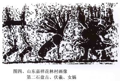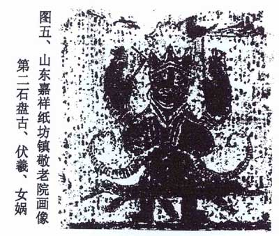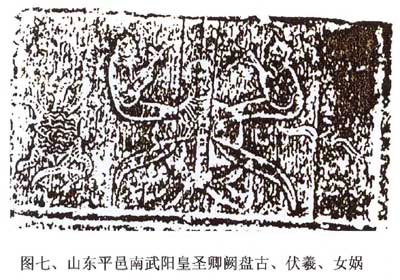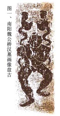 考古发现河南、山东汉墓画像石中有一种“巨人怀抱伏羲、女娲”的图案。据说:除山