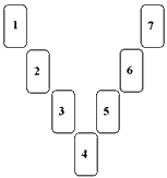 2、切实牌后,将最上面的第一张到第七张取同,依图示的位置放好。要小心,不要把牌的上下方向弄颠倒!
