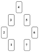 2、请求问者任选出七张牌。将这张七牌顺序依图示放到(1)至(7)的位置。