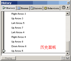 轻松掌握网页制作 深入学习和使用 高级使用和理解 站点管理 发布网页 样式表编辑 Timelines Behaviors Template Library HTML源代码编辑器 强大的查找替换功能 历史面板的应用 附录 常见问题汇总 快捷键分级介绍 一句话技巧集萃 功能快速索引 | | | | | | | 历史面板的应用 (1)一次撤消多步操作 大家都知道,如果在文档中进行了误操作,可以按Ctrl+Z键撤消这些操作,但这样只能一步一步地撤消,有什么办法能将文档恢复到以前的某一步操作呢? 按下F9键,看,这就是Dreamweaver 3新增的历史面板(History palette ),这是从PhotoShop5学来的,面板中显示了我们创建或打开当前文档后所完成的所有操作步骤。利用历史面板,我们能够一次撤消很多步操作。下面我们看一下如何用历史面板撤消操作。在历史面板上,找到希望撤消的最后一步,拖动滑块到这一步所在的位置,也可以直接单击该位置列表左端位置,这时滑块会自动跳到该位置上。可以看到,这时文档窗口中自动恢复到撤消操作后的状态,同时历史面板中被撤消的操作列表会变为灰色。如果希望恢复这些操作,可以重新将滑块拖动到该步骤上,这时被撤消的操作又会被恢复。  图1 历史面板 注意:一旦撤消了多步操作,然后又进行了新操作,则原先被撤消的操作就不能再恢复,历史面板中被撤消的操作列表会消失,并列出新的操作步骤。 当然你不可能无限制地撤消操作,在历史面板中可撤消的操作步骤是数的。按下Ctrl+U,在左侧列表中选“General”,看,对话框最下面标明最多可撤消的步骤数为50,你也可以根据需要自己设定,比如改为100,就可以撤消100步了。  图2 设置历史面板最多能恢复的步数 下一节  谈谈您的看法 | | | | |