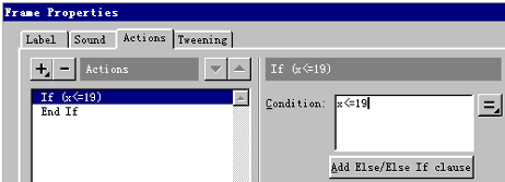 | ●预览成品: 下载源程序 ●逐步说明: 1)选择菜单File->New,创建一个新电影。 2)选择工具栏中的文字工具 ,在文字工具参数栏中选择字体大小为48,颜色为黑色, 并点击“Text Field”按钮 。 3)在工作区中点击鼠标,出现一文本输入框。点击工具栏中的箭头按钮 ,选中并用鼠标右键单击文本输入框,在弹出的菜单中选择Properties项,  进入文本属性对话框,在ariable域中输入变量“x”。  单击OK按钮,关闭属性设置对话框。 4)在第12帧处插入一个关键帧,  并用鼠标双击该帧,弹出该帧属性对话框,切换到Action选项卡,点击“+”按钮 ,弹出一下拉菜单,点击“If”项,  在“If”语句的“Condition”域中输入“x<=19”。  再次点击“+”按钮,弹出一下拉菜单,点击“Set Variable”项,分别在“Variable”域和“Value”域中输入变量“X”及表达式“X+1”。  由于在“Value”域中输入的是数学表达式,所以应单击“abc”按钮 ,在弹出的菜单中选择“Expression”项。  重新选择“If”语句,点击“Add Else/Else If clause”按钮,这时您将看到左边程序栏中增加了一条“Else”语句。选择“Else”语句,点击“+”按钮,在弹出的菜单中选择“Set Variable”项,再在“Variable”域和“Value”域中输入变量“X”及表达式“1”。  完成后点击“确定”按钮,关闭帧属性对话框。 5)选择菜单Contrl->Test Movie,即可看到计时器的效果。 |