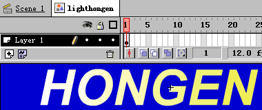 | ●预览成品: 下载源程序 ●逐步说明: 1)新建一文件,其属性为如图所示:  2)选择菜单Insert->New Symbol,弹出图符属性对话框,输入图符名,选择Graphic项。  3)点击工具栏中的文字工具 ,设置其字体为Arial,大小为72,颜色为蓝色,粗斜体,  在工作区中的适当位置点击鼠标并输入文字:gdjyw。 4)新建一图符:lightgdjyw,从图符资料库中拉入图符:gdjyw,选择菜单Modify->Break Apart,将文字打碎。 5)选择工具栏中的油漆桶工具 ,将参数栏中的填充颜色设置成从白色到黄色的渐变,  设置完毕,用鼠标点击文字。  6)新建一图符:slowgdjyw,从图符资料库中拉入图符:gdjyw,选择菜单Modify->Break Apart,将文字打碎。 7)选择工具栏中的油漆桶工具,将参数栏中填充颜色设置成黑色,然后用鼠标点击文字。  8)切换到场景1,新建图层layer 2和layer 3,分别把图符gdjyw、lightgdjyw、slowgdjyw放于图层layer 3、layer 2、layer1中,调整其相对位置为如图所示:  9)新建一图符:zhezhao,制作图形为如图所示(填充颜色为蓝色,即背景色):  10)切换到场景1,新建一图层layer4,从图符资料库中拉入图符:zhezhao,适当调整其位置(要求完全遮住文字),在第30帧处插入一关键帧,用键盘上的方向键把它平移到工作区的右边(要求显露出文字)。建立移动路径为如图所示:  11)选择菜单Control->Test Movie,即可测试动画效果。 |