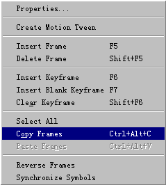| ●预览成品: 下载源程序 ●逐步说明: 1)选择菜单Insert->New Symbol,弹出图符属性对话框,输入图符名为Down,选择Movie Clip项,  设置完毕,点击OK按钮,进入Movie Clip编辑模式。 2)在图层中插入5个关键帧,画出按钮被按下的过程,设置第5个帧的Actions为:Stop,  点击图层名称,这时,这个图层的帧被全部选中,用鼠标右键点击被选中的任意一帧,在弹出的菜单中选择Copt Frames。  3)新建Movie Clip:Up,用鼠标右键点击第1帧,在弹出的菜单中选择Paste Frames,  粘贴刚被复制到剪贴板的帧。全部选中被粘贴的帧,选择菜单Modify->Frames->Reverse,  使帧的播放顺序相反,取消第1帧的Actions,设置第5帧的Actions为:Stop。 |