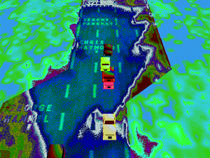 | 严格地说这不是Excel 2000的一个彩蛋,而是DirectX、IE 5.0和安装完整的 Excel 2000 的复合彩蛋。 操作步骤 A. 启动 “Excel 2000”; B. 点击“文件”菜单,选择“另存为 Web 页”命令; C. 点击“发布”按钮,在弹出的对话框中选择“添加交互对象”; C. 可以在下面的“文件名称”一栏中改变文件存盘的路径和名称; D. 用 IE 打开文件,我们能在页面中央看到 Excel 工作簿; E. 滚动到第2000行、WC 列; F. 选中第2000行,并按 “Tab” 键,将“WC”列变为当前的活动列; G.同时按住“Shift”、“Ctrl”和“Alt”键,单击Excel 工作簿左上角的“Office”标志。  显示效果 这时候我们将会玩到一个 Spy Hunter的游戏。 用“方向键”来移动; “空格键”来开火; 按“H”键可以打开车灯; 按“F10”可以暂停; “ESC”键退出。 若有车与我们并架齐驱时,可以将其挤到路边使之撞毁。 其中有一条车道是直通道,不用拐弯,尽管向前即可,不过这就失去了很多乐趣。 道路上显示的估计是EXCEL2000开发小组及成员姓名。 怎么样,很有趣吧,要有信心把它挖出来啊。 点击旁边的缩略图就可以看到彩蛋的精彩画面了。 ☆ |