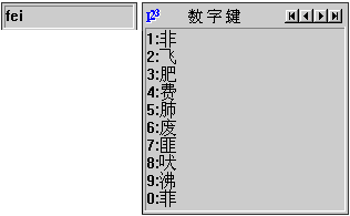 | 在简体中文Windows 95/98中按Ctrl+空格,屏幕下方会出现一个小小的提示条 ,它告诉我们现在已经是汉字输入状态了。如果再按Ctrl+Shift键,就可以切换输入法。我们选择输入法为全拼。 使用全拼双音汉字输入法。既可以输入单个汉字,也可以输入双字词汇。 Windows 98 内置的全拼输入法完全符合《汉语拼音方案》规范。 全拼输入法不但支持GB2312 字符集的汉字及词语输入,而且支持汉字扩展内码规范 - GBK 中规定的全部汉字。 图1 全拼输入法的状态条 1. 输入单个汉字 要输入单字,就需要输入该字拼音的全部字母,比如输入飞翔的“飞”字,那么就输入fei,提示条旁的汉字列表中出现了拼音是fei的汉字。(见图2) 图2 输入单字 按一下数字键2,飞就出现了。 2. 输入双字词汇 例如拟输入“可以”这个双字词汇,可以连续键入拼音码 “keyi”,提示条旁边会出现一个单词选择列表,见图3。 图3 输入词汇 直接敲空格即可输入“可以”这个词。 返回到主界面 |