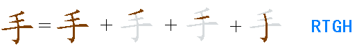 | 二、 怎样拆分汉字 8.成字字根的输入 [小博士] 下面我们讲成字字根的输入。 [晓 宇] 什么是成字字根? [小博士] 在字根总表中,除了键名字根外,本身就是汉字的字根,称为成字字根。比如“马、手、刀”等。这样的成字字根一共有65个,但这些字经常要输入,所以需要掌握其输入方法。 [晓 宇] 怎么输入呢? [小博士] 成字字根的输入方法是:先打一下该字根所在的键,再打该字根的第一、第二及最末一个单笔画。 即:键名+首笔代码+次笔代码+末笔代码 比如,十,键名为F,首笔是横,次笔是竖,“十”的编码就是FGH。虽然不够四码,但也不用识别码。 贝,键名为M,首笔是竖,次笔是折,末笔是捺,所以“贝”的编码就是MHNY。  我来考考你,“手”的编码是什么? [晓 宇] “手”,键名是R,第一笔是撇,第二笔是横,最后一笔是竖钩,所以编码是RTGH。  [小博士] 很好。需要注意,首、次、末笔一定是指单笔画,而不是字根。如果把“贝”字拆成“贝、冂、人”,MMW,这就是错误的了。 练习:输入下面这些成字字根的编码。 马 小 车 戋 川 刀 厂 三 乃 米 八 文 止 虫 心 答案: CNNG IHTY LGNH GGGT KTHH VNT DGT DGGG ETN OYTY WTY YYGY HHHG JHNY NYNY 上一页 下一页 返回到首页 |