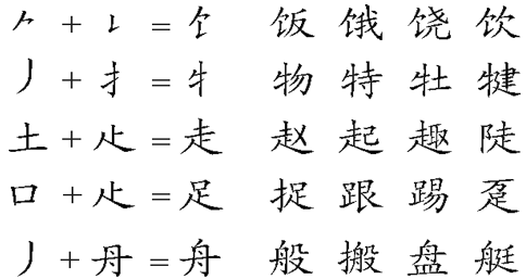 | 二、 怎样拆分汉字 9.常见部首的拆分 [小博士] 下面我们讲汉字中一些常见部首的拆法。这些部首都很常用,但在五笔中没有被列为字根,比如“犭、礻、衤、革、骨、黑”等,所以我们有必要单独讲一下。 [晓 宇] 的确,在拆字过程中经常要用到这些偏旁。 [小博士] 我们先来看反犬旁,在五笔中,没有把“犭”当作独立的字根,而是把它拆成了“ 、丿”。  比如“狼”,就可以拆为“ 、丿、丶、 ”,编码QTYE。这样的字很多,如“狗、猫、猴、犯、猜”等。  [晓 宇] 噢,很多动物名都要用到这个偏旁。 [小博士] 在汉语中,由示补和衣补组成的字也很多。五笔中,把示补少个点当作字根,这样示补等于这个字根加个点,衣补等于这个字根加两个点。 [晓 宇] 那示补的编码就是PY,衣补的编码就是PU喽? [小博士] 不错。我们看个带示补的例子,比如“社”,编码为PYFG,再比如“神、视、礼、祝、祸”等。  带衣补的例子,比如“被”,编码为PUHC,类似的字还有“补、初、袖、裤”等。  [晓 宇] “衬衫、被褥”也都是! [小博士] 你说得很对! 还有一个部首要注意,就是“ ”,它可以看成是一撇和一个提手组成的,千万不要把它当“牛”字来拆。  比如动物的“物”字,可以拆分成这样,编码为TRQR。类似的字还有“特、牡、犍、牲、犒”等。  [晓 宇] 噢,原来是这样! [小博士] 下面我们再看,这是一些偏旁的组合及例字。你把各个组合偏旁的编码说出来。 [晓 宇] 我来看一下。噢,“ ”是QN,“走”是FH,“足”是KH,“舟”是TE。  [小博士] 嗯,不错,你再看看下面这些。 [晓 宇] 噢,原来F键中的这个偏旁是用来组成“革”字的,那“革”的编码就是AF,“骨”是ME,“鱼”是QG,“酉”是SG。  [小博士] 看,还有一些偏旁是由三个或三个以上字根组成的。 [晓 宇] 哦,“黑”是由三个字根组成的,编码是LFO,“鬼”是RQC,这个字根是VFH。“身”是由四个字根组成的,编码TMDT。“鹿”是YNJX, “鼠”是VNUN。  [小博士] 好,掌握了这些偏旁的拆法,输入应该没什么问题。我们还有一些偏旁没有讲,比如“耒、殳、鼻、龙、豸”,你可以根据刚才所讲的,对它们进行拆分,并且多做些练习。 [晓 宇] 好的。 练习:根据已有的偏旁拆分提示,写出下列字的编码,编码要写全。 提示:  例字: 栽 截 彩 菜 蛋 楚 决 块 颇 被 海 姆 狼 食 帮 寿 答案: FASI FAWY ESET AESU NHJU SSNH UNWY FNWY HCDM PUHC ITXU VXGU QTYE WYVE DTBH DTFU 上一页 下一页 返回到首页 |