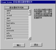 | 2.7 配置系统参数 2.7.1 配置服务器软件 2.7.2 配置鼠标 2.7.3 配置X Server 2.7.1 配置服务器软件 进入配置服务器软件对话框,屏幕提示如图2-26:  图2-26 系统V服务器管理软件 你可以根据自己的实际情况来选择你需要的服务器软件,对话框的右侧有对左侧所列服务器软件的简要介绍。 一般选择默认配置即可,鼠标单击确认。 屏幕显示:服务器软件设置保存完毕 这时按“确定”。 2.7.2 配置鼠标 确定后,计算机器将重新启动,屏幕将出现如图2-27所示的鼠标的配置界面。  图2-27 鼠标的检测结果 图2-28为配置鼠标程序。选择你的鼠标的型号,如果是二键鼠标,移动光标到“[ ]模拟3键鼠标?”,按空格键选中此选项。  图2-28 配置鼠标 图2-29为选择鼠标的端口号,/dev/cau0是DOS下的COM1,如此类推。  图2-29 选择鼠标端口号 注意: 鼠标检测程序有时可能会错误的将MS串口鼠标识别为PS/2鼠标,请注意屏幕提示。 2.7.3 配置X Server 如果你用过以前的XteamLinux的版本,你会发现,如果想配置显示器、显示卡、鼠标等设备,你首先需要进入系统,经过登录、输入命令等步骤,而新的XteamLinux3.0当你配置好鼠标,点击OK键后,将会自动出现一个图形化的配置显示器、显示卡、键盘、鼠标等。 如图2-30所示:  图2-30 X Server配置 配置显示器 如图2-30所示,在监视器一栏的下拉式滚动列表中,选择合适的显示器。 如果你的显示器没有列在这里,选择手工定制或Custom。这时将弹出一个如图2-31所示对话框。  图2-31 定制显示器 选择手工定制的用户一定要知道你的显示器型号,及其相关的参数,否则你可以选择Custom来配置你的显示器。当你选择了手工定制后,你要给出你的显示器生产商、对显示器的描述、以及显示器的垂直同步率、水平频率和最大分辨率。 接下来你将在颜色下拉式列表中,选择你的显示器的彩色模式,某些AGP的显卡目前只能支持8位或16位彩色模式,建议使用16位彩色模式。 你可以在这里配置桌面的大小,并且根据你的个人需要在激活虚拟桌面。 注意:当你配置显示器后,一定要点击“高级”键,来配置显卡、鼠标、键盘等选项,否则X Server将无法启动。 配置显卡 当你点击了“高级”按钮后,将出现如图2-32所示的显卡选择程序画面,表中列出了XteamLinux所支持的显卡。  图2-32 配置显卡 在这个对话框中,你可以先点击“自动检测”按钮,让系统来自动检测。如果顺利的话,它将正确的认出你的显卡;如果不顺的话,你就要自己选择显卡,找出你的显卡的型号。 配置键盘与鼠标 点击高级里的“输入”项,出现的是配置键盘与鼠标的界面。  图2-33 配置键盘与鼠标 根据你个人键盘的情况,选择相应的键盘布局与类型。 注意: 在2.7.2.一节中虽然我们讲述了鼠标的配置,但是在这里一定要重新配置一下。因为在这里的所有配置选项,将生成一个新的配置文件,将你在2.7.2节中的配置内容覆盖,所以如果你没有重新配置鼠标,而默认的选项不附合你的鼠标类型,那么在启动X Server后,将无法使用鼠标。 在鼠标类型列表中选择你的鼠标类型,在设备一栏里,选择鼠标的端口。 如果你的鼠标为2键鼠标,请你在模拟3键的地方打一个勾,然后单击“确定”键。 当你确定你的显示器、显卡以及鼠标等选项都已经配置好后,点击“确定”按钮,系统将在15秒钟内启动测试,并能够看到测试图案。 当测试完成后,将出现一个X服务启动打印信息,只要点击“确定”即可,如果你对测试结果不甚满意,可以重复以上步骤来重新配置。 至此,XteamLinux的安装配置已全部完成,系统将重新启动,进入启动界面。  谈谈您的看法