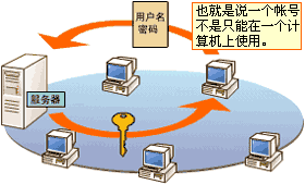 | ·可以从网络中的其他电脑登录我的Windows 2000 吗? 由于Windows 2000 Professional可以在一个小局域网络充当服务器, 我们在Professional中创建的用户帐号,不仅可以用来从本机登录,也可以用来从网络中的其他电脑登录到本机Windows 2000,使用服务器上的共享文件、打印机等资源。 这种情况就好像,我们在北京的一个邮政储蓄所开了个户头,就可以凭借储蓄卡在北京或其他的城市的邮政ATM机上取款(如图一)。也就是说一个帐号不是只能在一个计算机上使用,因为验证帐号的是网络中的服务器,而非当前使用的计算机(如图二)。  图一 | 图二 | 在本机登录,我们已经经历过了,从网络上的其他电脑登录本机也非常简单,打开桌面上的"网上邻居",浏览到"Windows 2000 Professional"计算机上,双击,此时会出现一个登录窗口,提示输入用户名和密码;此时我们输入一个在Professional上的帐号名和相应密码(如下图),再单击"确定",就登录成功了。  此外,我们也可以同时在几个电脑上使用同一个帐号登录Professional的服务器上。  谈谈您的看法 |