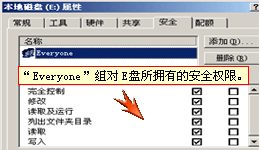 | ·看看文件的安全性 下面我们就先看看目录的安全设置,从"我的电脑"访问到E盘的"Project"目录,选中此目录,单击鼠标右键,选择"属性"。你会发现目录的属性比在Windows 98下多出了"安全"一项,我们打开"安全"选项卡。(如图一)和设置共享权限的画面类似,上面是分配了安全权限的组或用户列表,下面对应列出他们所拥有的权限。(如图二) 图一 | 图二 | 图三 | 我们先选中"Administrators"组,在下面的框中可以看到没有给该组分配任何权限,注意看下面"高级"按钮下的说明文字"额外的权限已存在,但无法在此处查看。(如图三)"为何会这样呢?从"组"后面的说明可以看到该组是本机的内置系统管理员组,他的权限比较特殊,所以系统采用一些保护方式。 再点下面的"System"组,这个组和Administrators有同样特殊性,"System"是"系统程序"用户,属于内置组。对于这两个组,通常都不要更改他们的权限。 图四 | 再点一下"Everyone"组,他的权限是允许"完全控制",只是这些权限的框被标为灰色的,(如图四)这又有什么特殊的地方吗?这种灰色的框,表示这些权限是继承自"父系"的,这里又出现一个新概念,那如何来理解"父系"呢?对于目录"Project"来讲,E盘根目录是它的上级目录,以前人们叫做"父"目录,也就是这里所说的"目录Project"的"父系"。我们在E盘的图标上单击鼠标右键,选择"属性",再打开"安全"选项卡,在这里可以看到"Everyone"组对E盘所拥有的安全权限,"E盘Project"的安全权限便是继承它的。  谈谈您的看法 |