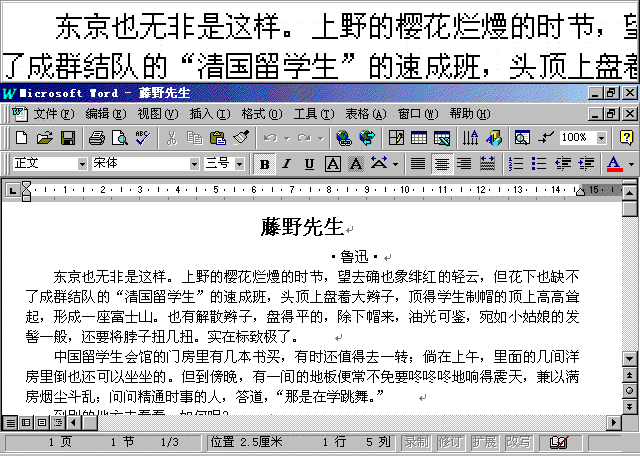 | 38、放大镜 Windows 98中提供了一个叫做“放大镜”的程序,它可以帮助视力不好的人方便地使用Windows。 在“附件”菜单下打开“辅助工具”,选择“放大程序”。 在屏幕的上方出现了一个长条窗口,显示出桌面的放大图像,随着鼠标的移动,放大镜窗口也随着变化。用鼠标拖动放大窗口的下边缘,可以改变窗口的高度, 在设置窗口中还可以设置放大的倍数,您还可以试一下其他的几个选项,看看会有什么效果。这种方法对于视力不好的人来说可以起到很好的辅助作用。如果你不喜欢它的话,单击 “关闭”就可以将它取消。