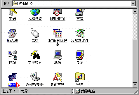 | 35、多用户的管理(一) 如果您家里的电脑总是有好几个人使用,每当打开电脑时,Windows的桌面已经变成了您不喜欢的样子,您的家人也在常常抱怨“是谁又把我的桌面改成这个样子啦!...”不要再生气了,如果仔细找一下的话,您会发现Windows 已经给您提供了为每一个用户提供各自桌面设置的功能。 从“开始”菜单的“设置”下打开“控制面板”,其中的“用户”便是提供这项服务的。双击“用户”图标。 第一步提示是询问是否愿意允许多个人使用您的计算机,我们单击“下一步”继续。 第二步是为新用户创建一个名称,输入名称,单击“下一步”。 第三步是给新的用户分配登录密码,这一密码要输入在如图的两栏目中,再单击“下一步”。
